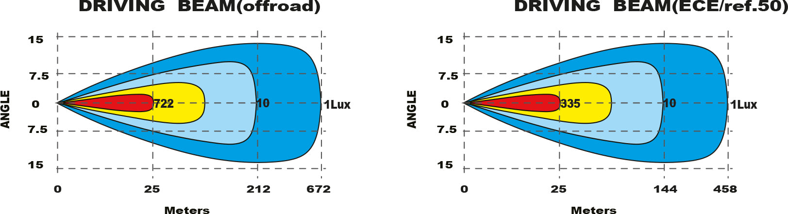 - Driving Beam light pattern (wide and oblong)
