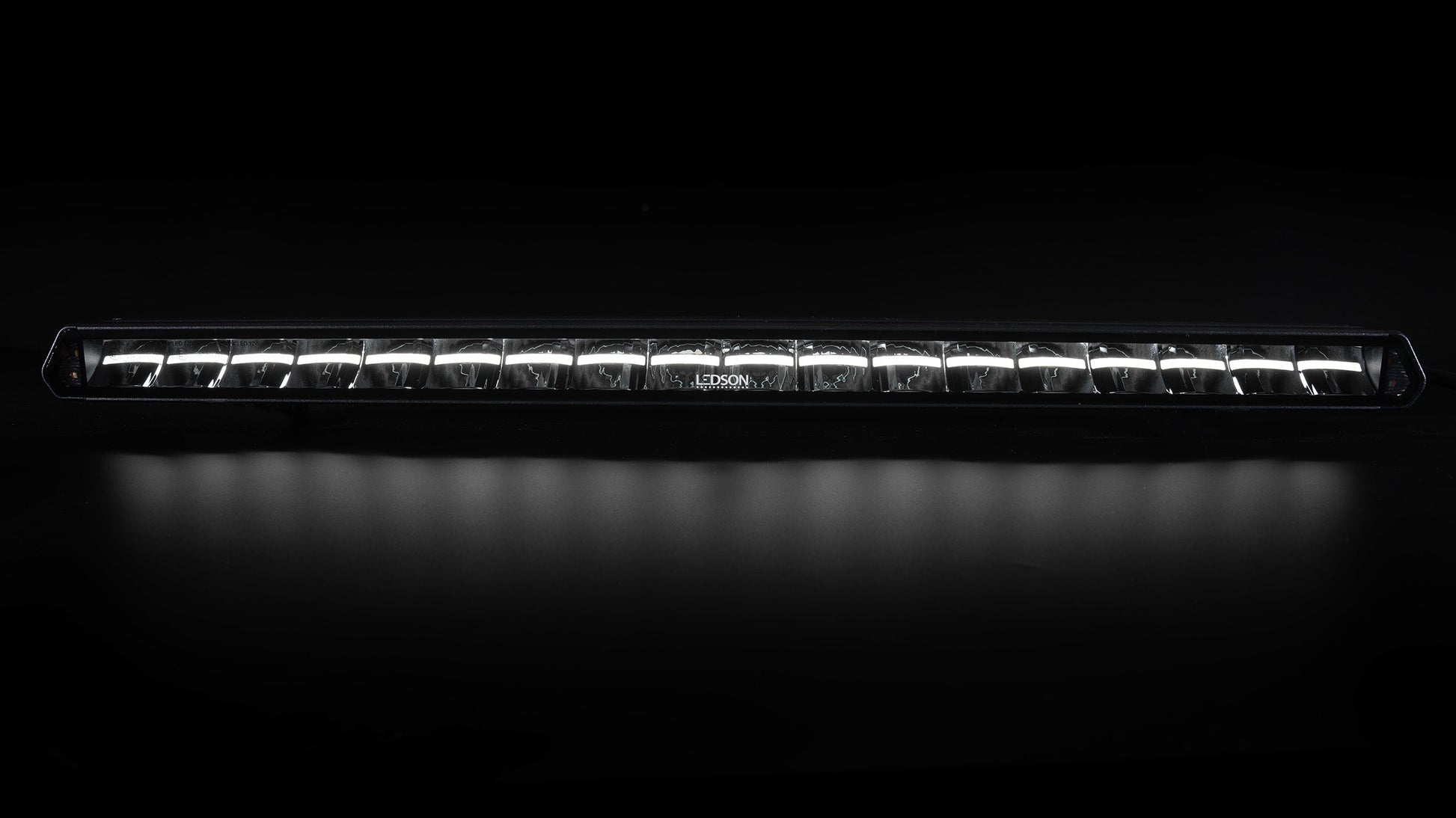 The design of the bar is uniquely developed by Ledson and is in harmony with today's most modern cars, taking your vehicle to the next level. Its dynamic position light turns on with a powerful movement that neatly guides the light from one side of the bar to the next before fully lighting up. The position light is integrated into the reflector, a completely unique feature that makes you stand out a little extra.